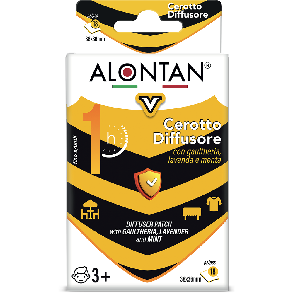 ALONTAN V è un cerotto diffusore a rilascio progressivo di una miscela di oli essenziali